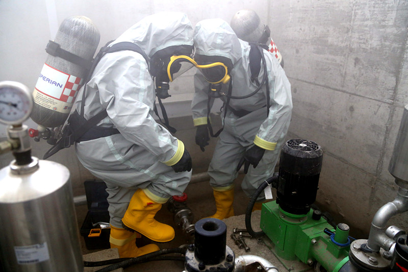 江濱水處理公司:“雙氧水泄露反事故”應急演練